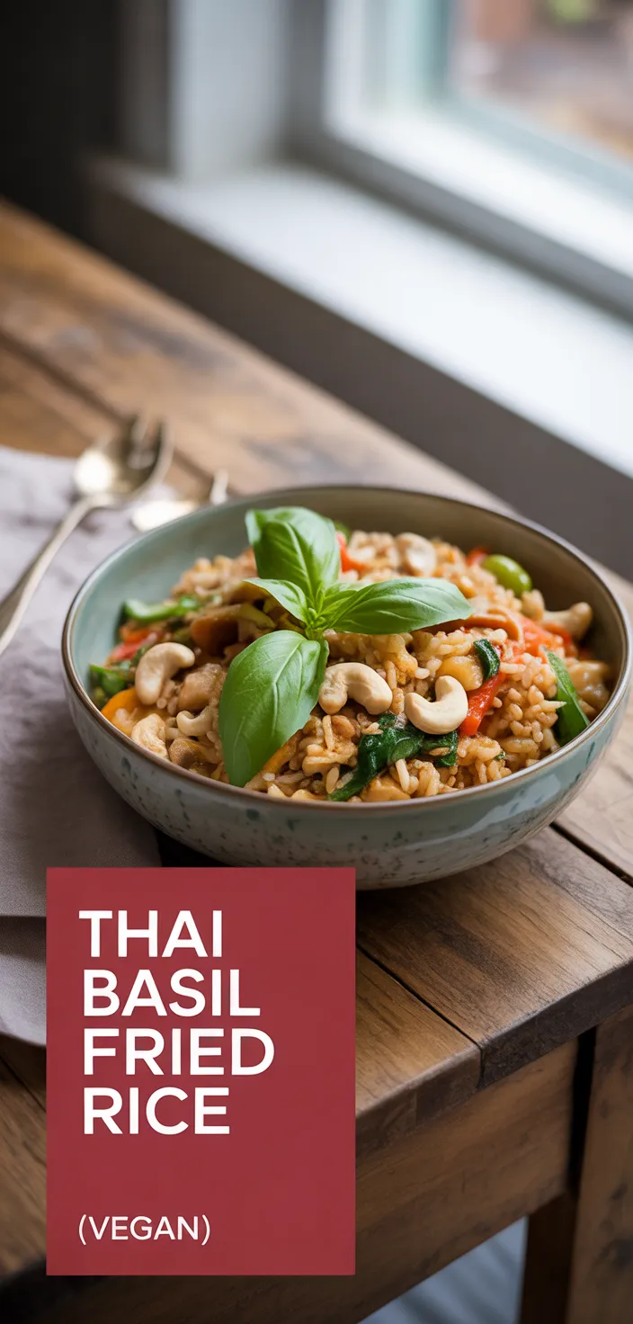 I’m obsessed with this Vegan Thai Basil Fried Rice because it hits every corner of lazy weeknight cravings. I love that the jasmine rice gets fluffy while the basil punches through with that sharp herbal kick.